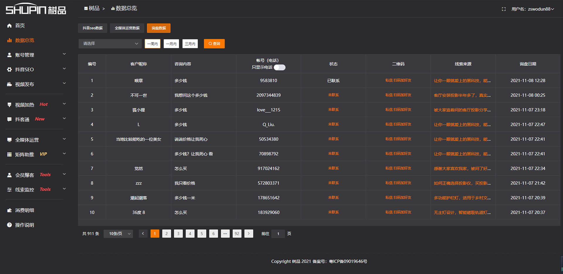 詢盤數(shù)據報表